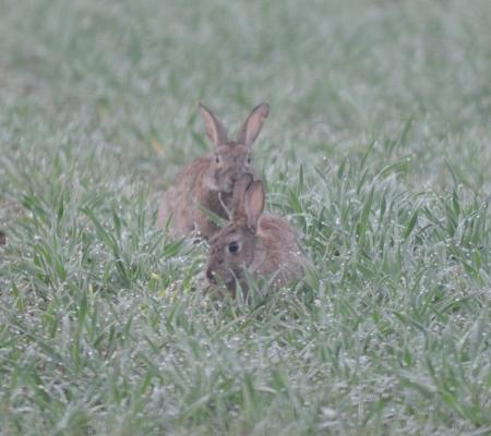 Ce matin, dans le pré en face de ma maison, les lapins se sont rapprochés dans le pré, difficile de les saisir meme avec l'objectif.