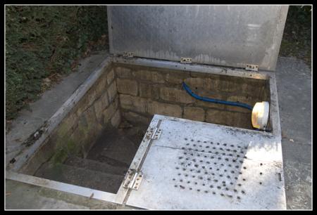 sous ce puits "factice" passe un souterrain. Le coeur historique de Pontoise est édifié sur un plateau calcaire. Cette roche fut exploitée tout au long du moyen âge comme en témoignent les nombreuses carrières souterraines.