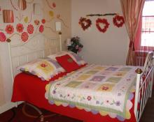 Une paire de double rideaux rayés, et du papier peint de deux couleurs différentes, un lé sur deux et un sticker pour le décor, finalement, c'est pas si mal ; un espace pour les enfants qui voyagent avec leurs parents...