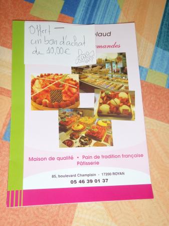 un bon d'achat de 10 euros dans une boulangerie de royan(saveurs gourmandes chez Laurent Cluzelaud)