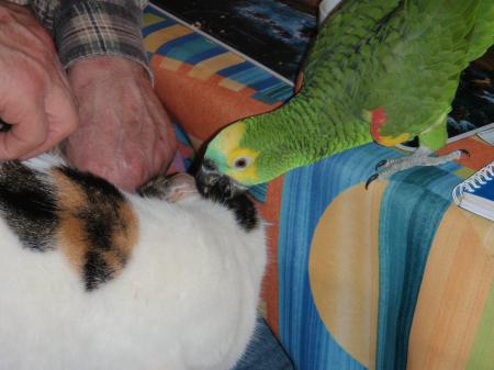 aujourd'hui César a décidé de câliné "à sa façon " Nounouchette ,elle est patiente
