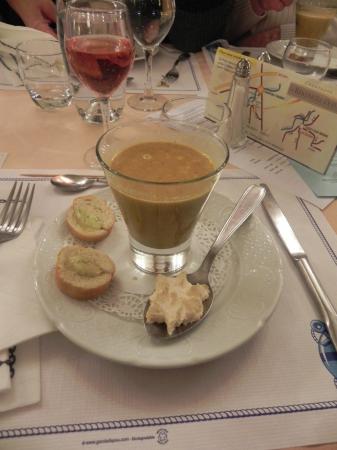 Nous avions l'apéro puis une bisque,joliment servie dans une verrine