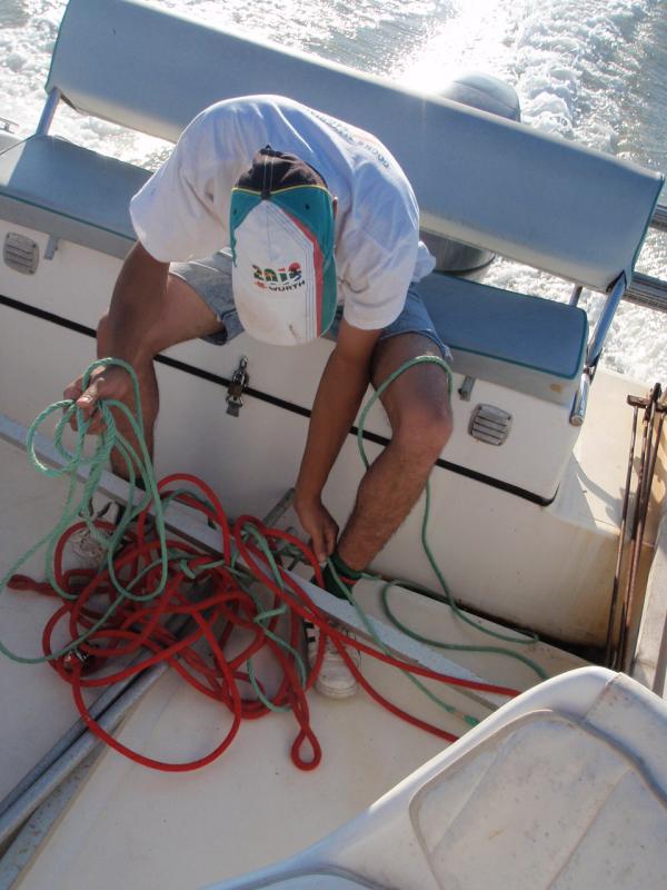 puis il faut tirer sur la corde et espérer qu'un poisson passe par la au même moment