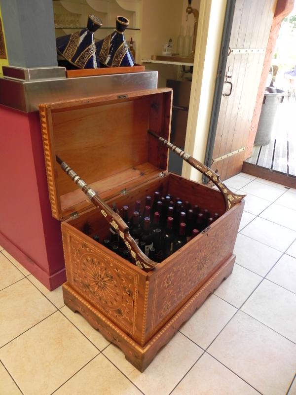 Un coffre à vin ,avec une façon original de le tenir ouvert