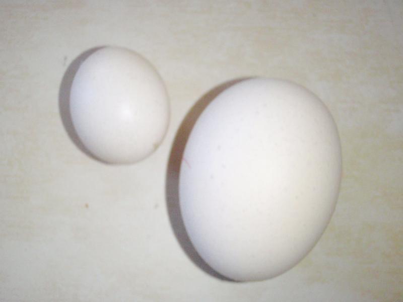 un gros gros oeuf ,je me demande si un pigeon n'est pas venue pondre avec mes poules????