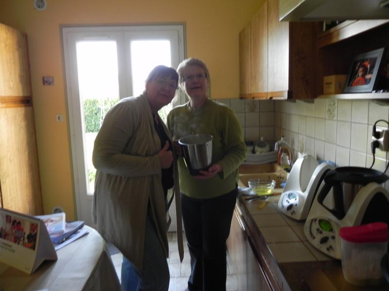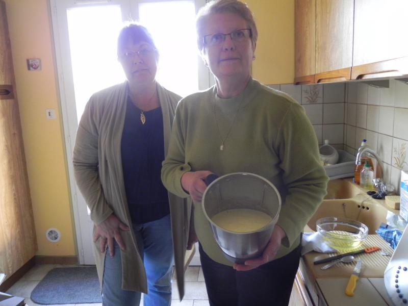 Je participe à l'élaboratin des recettes ici des oeufs à la neige pour les îles flottantes que ma cousine a à tout pris voulue nous faire ,ici avec notre démonstratrice Maryse