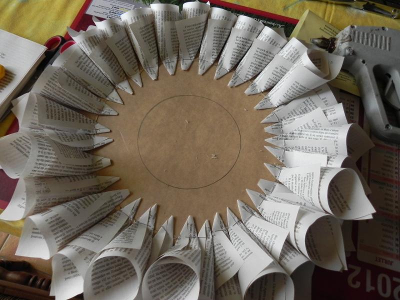 Une ficelle dans l'attache ou un clou et voila une couronne qui ne revient pas cher ,je n'ai utiliser que des matériaux de récupération ,