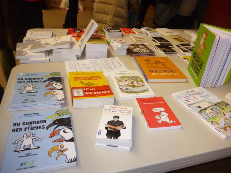 Un stand où des illustrateurs dédicaçaient leurs livres , dont Pierre Fouillet qui a illustré la B.D. que Majid Bâ à tiré de son roman : La sardine du cannibale.