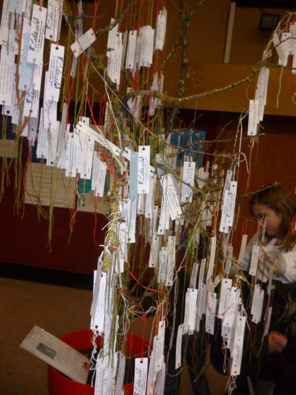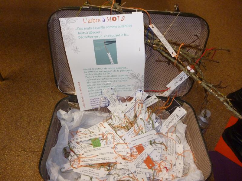 Chaque visiteur est invité à décrocher " une feuille" où est écrit une citation .