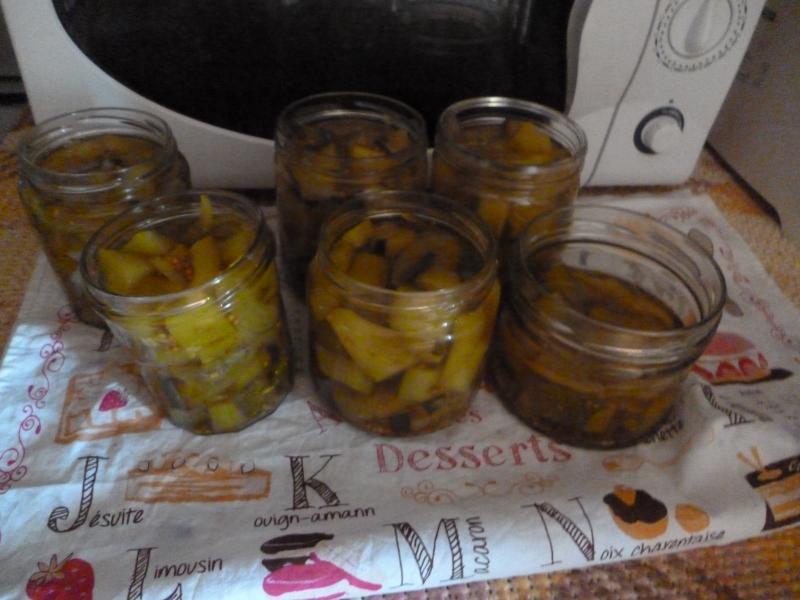 C'est quoi ?? Réponse: C'est Lisette qui a vu juste ce sont bien mes conserves de courgettes à l'aigre-douce ( sur 4 jours) Françoise ( la Guillaumette) n'en était pas loin .