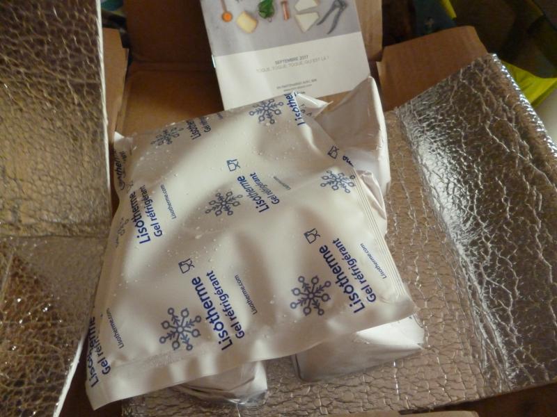 Toujours aussi bien emballés av ec un sachet de gel réfrigérant .
