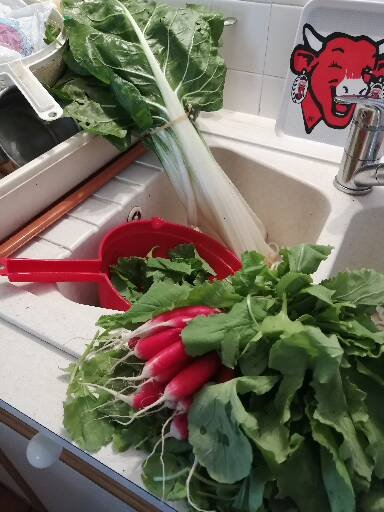 Voila ma petite soupe de fanes de radis ( oignon et une pomme de terre )