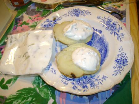 Voici l'assiette prête . C'est vraiment du vite fait en cas de "presse".Les pommes de terre sont extra ( bien grosses) et la sauce n'en parlons pas .. Un régal .