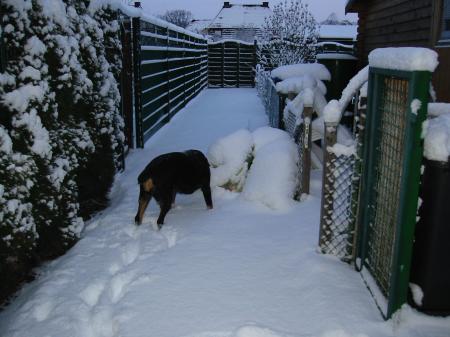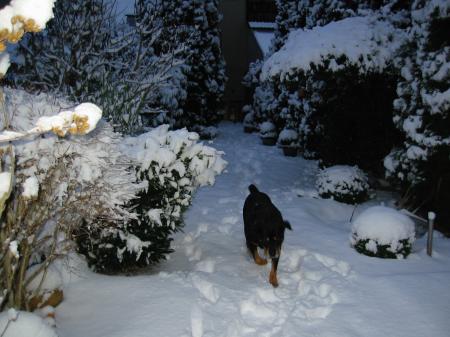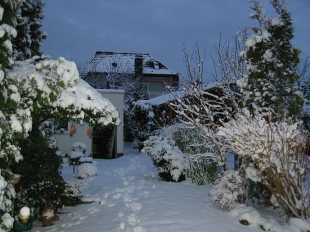 Voici les photos que je reçois d'Allemagne ( Formidable Internet ),il y a quelques minutes : Le jardin de ma fille . Rien à envier au mien,question blancheur !!!!!! Par contre pour l'épaisseur je ne rivalise pas.............