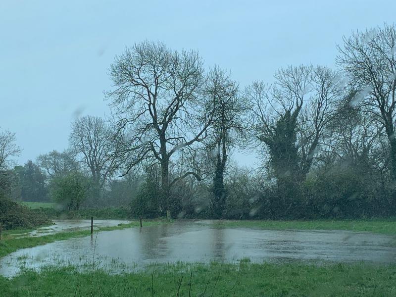 Une de mes petites filles, vit désormais en Irlande, dans la région du Kilkenny. Et voilà qu'une forte pluie a inondé les prairies et les routes... Le terrain n'a pu absorber l'eau.