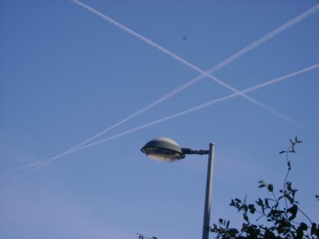 C'est un drôle de trafic dans le ciel . Photo prise de mon jardin.