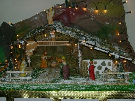 C'est une vieille Chapelle de notre quartier,ne autre fois je vous raconterai son histoire.Pour NOËL,voici la crêche que nous avons installée.Il faut vous dire qu"elle vient d'ALLEMAGNE.