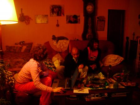 Quelques clichés de ce "fameux "soir ... En attendant , le petit réveillon on patiente avec l'apéro ... Pardonnez la rougeur de ces photos...Non, non nous sommes pas chez les "peaux-rouges" et pourtant on s'y croirait