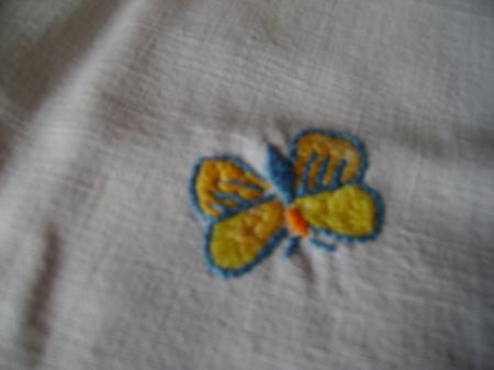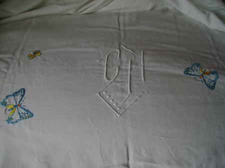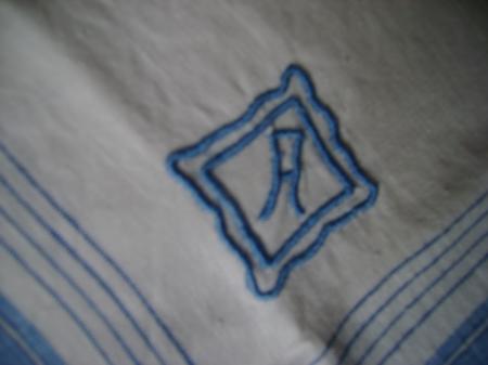 Un mouchoir brodé .Maintenant on ne les brode plus à l'initiale du "propriétaire"..Et les mouchoirs on s'en sert encore ??? On préfére les KLEENEX ...Eh bien pas moi .