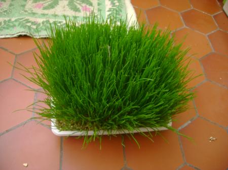 Ces petites" herbes "sont germées...Oh elle les renifle, en machouille une ou deux, mais elle préfére celles qui poussent en pleine nature.