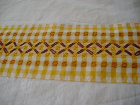 Et Annie "repart" pour la Broderie Suisse ,elle confectionne un coussin .