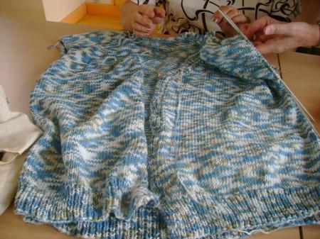 Quant à Nicole elle termine sont gilet...Qui l'a bien fait travailler, mais il est réussi.