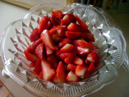 En dessert de bonnes fraises ( garriguettes) sucrées à la cassonade et un soupçon de vinaigre balsamique ....