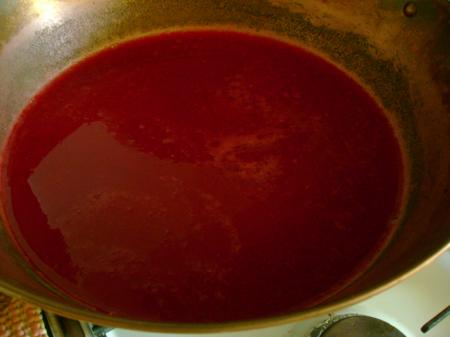 1Kg. 100 de jus autant de sucre spécial gelée, et cuisson à gros feu.