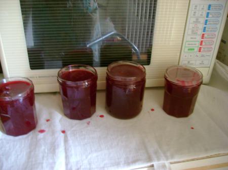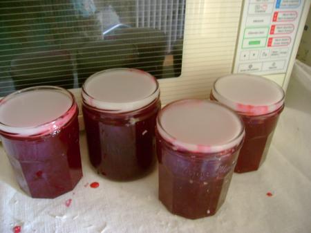 Quand la gelée est figée et refroidi je coule de la paraffine . Et voila 4 pots à déguster cet hiver , et pour y goûter demain au petit dèj. J'en ai un bon bol.