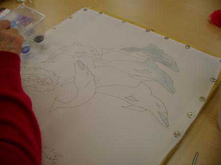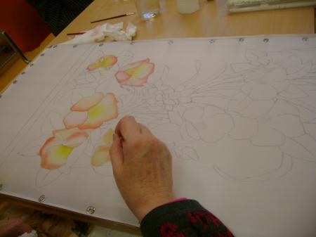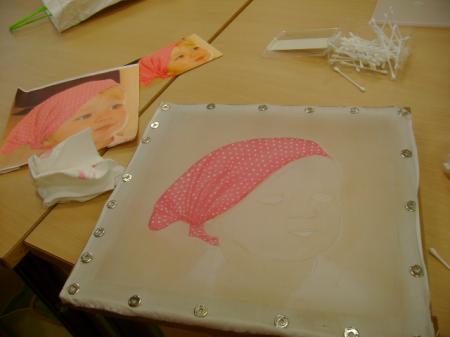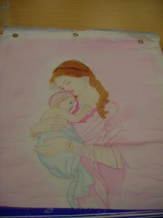 Gisèle se "lance" dans un tableau assez délicat : La vierge et l'enfant.
