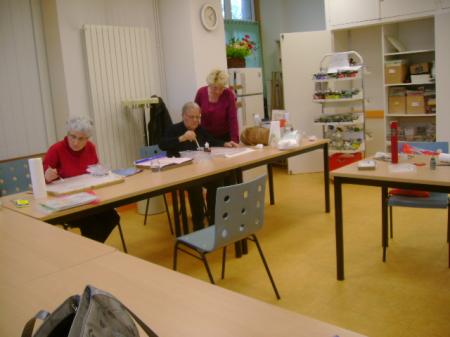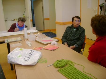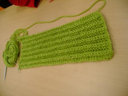 Qua nt à Danièle elle a abandonné la soie pour le tricot, elle fait une écharpe en fausse côtes anglaises, pour sa petite fille.