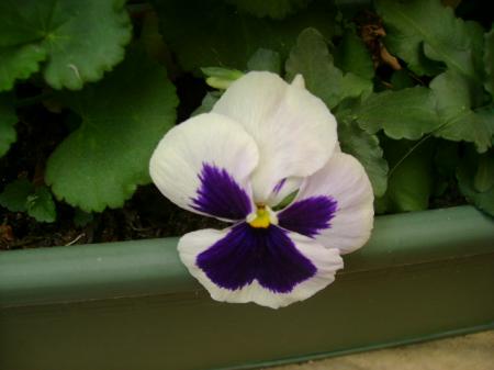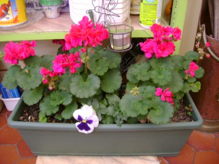 Et cette belle pensée qui sort je ne sais d'où ...Elle pose au centre de la jardinière .