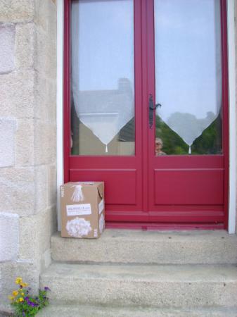 C'est vers 15h. en allant ouvrir le petit appart.( en rénovation) que je découvre un carton à ma porte d'entrée.