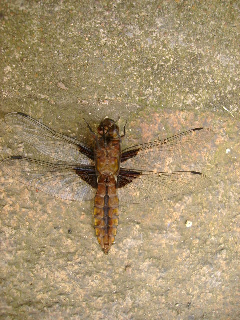 Pour avoir fait des recherches concernant ma pas très belle bestiole... c'est une libellule déprimée...LIBELLULA DEPRESSA ... La pauvre pas étonnant qu'elle ait mauvaise "mine"