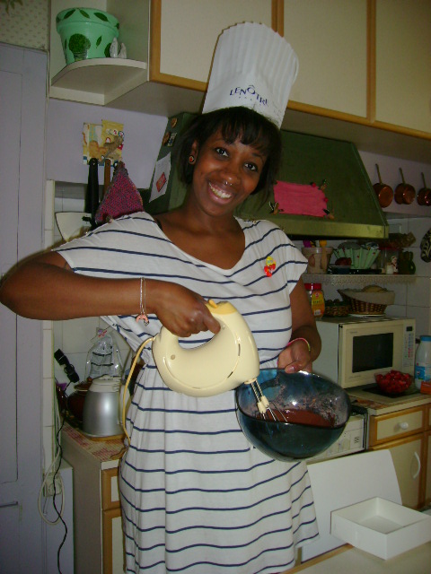 Comme nous étions dans la zone commerciale, bien sûr nous avons fait les magasins .....non satisfaites de ce coin , nous sommes reparties dans une zone opposée..Quelques petits achats et retour vers"chez nous".Car Marième devait réaliser un gâteau dont elle avait reçu les ingrédients et accessoire (Toque).