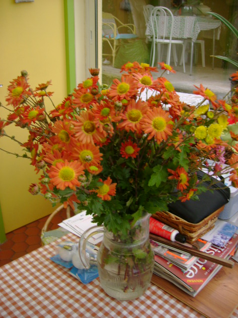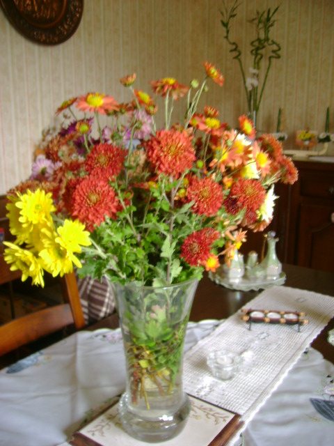 Voici plusieurs vases de chrysanthèmes qui fleurissent ma maison.