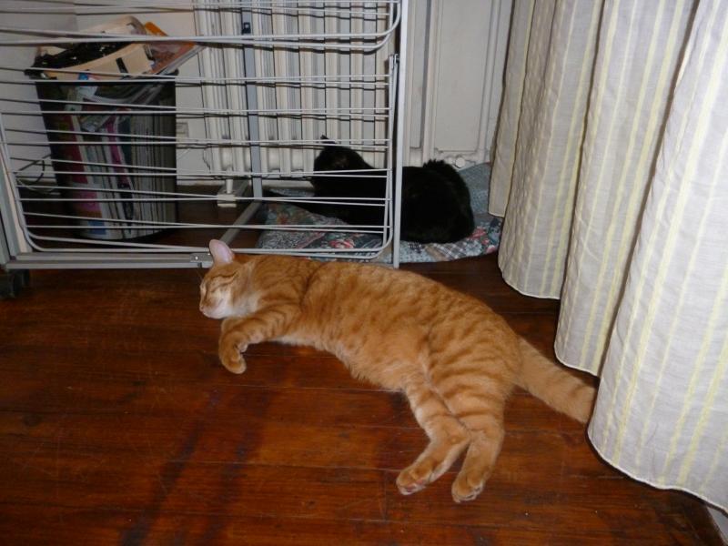 Eh oui les minous aiment bien faire leur petite sieste derriere le séchoir , devant le radiateur...