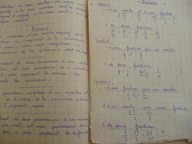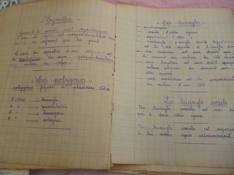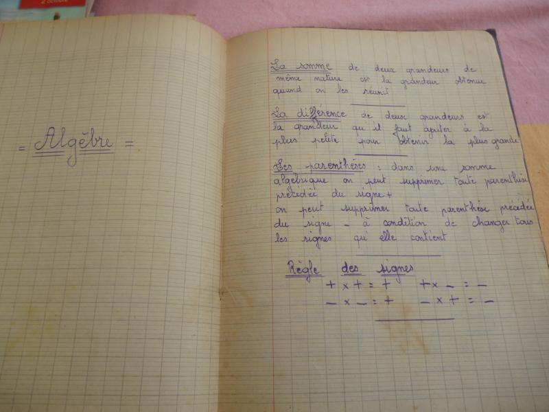 il y a quelques "jours" Cath, nous avait parlé du "BLED".. A ce propos je lui avais dit que je possédais encore un cahier avec les règles de grammaire et de français..Mais voila il est trop bien rangé, je ne le trouve plus..Par contre j'ai trouvé un autre cahier concernant les mathématiques.
