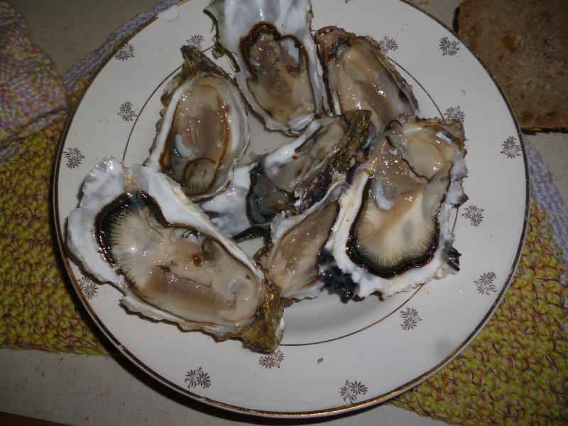 Qui m'a fait sérieusement envie avec son plat d'huitres. Alors ce matin je me suis rendue au marché et direction le poissonnier où je me suis achetée une douzaine d'huitres. (pas bon marché !!! 5euros 80, calibre 3) tant pis je me suis fait plaisir ....