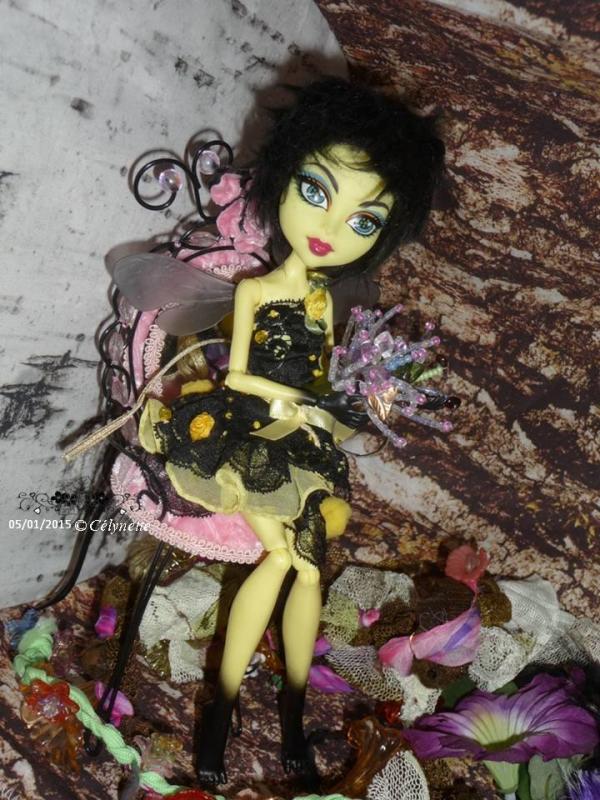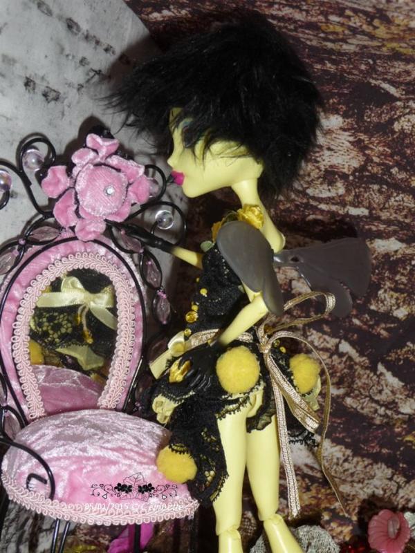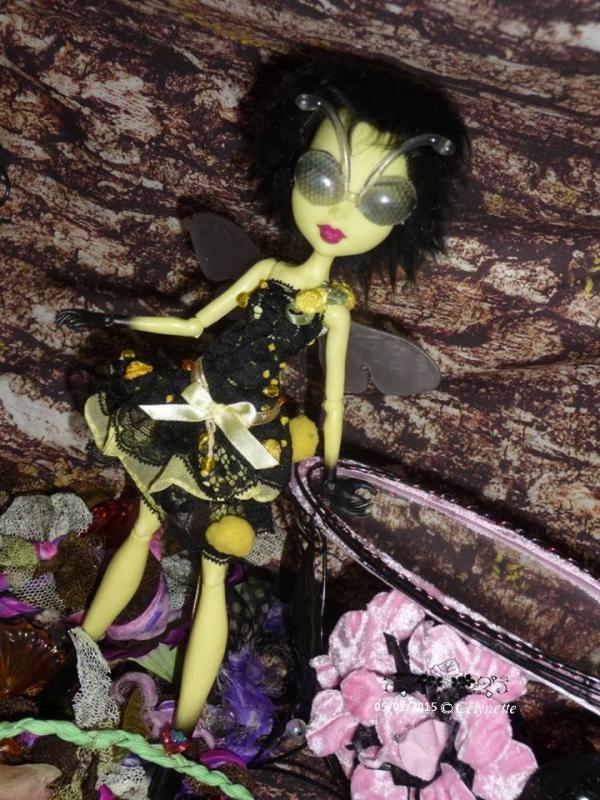 Donc hier, j'ai vu une custo bien sympa d'une monster high insector abeille, toujours avec l'accord de la propriétaire de la doll et des photos, je vous montre la petite merveille de Celynette.
