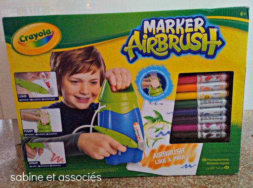 Hier au retour nous nous sommes arrêtés chez TOys'r'us et j'y ai vu un aérographe pour enfant avec des markers, nous avons regardé un long moment afn de voir quelque part si l'on pouvait mettre ca sur les poupées c'est la marque crayola, la machine coutant 29.90 et des feutres en plus presque 8 euros, nous avons remis à plus tard l'essai.