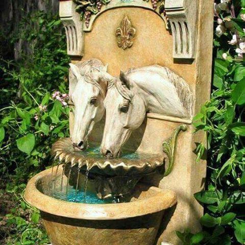 MIse en partage cette fontaine me plait beaucoup au lieu d'avoir comme bien souvent des représentations de têtes d'animaux morts la on a vraiment l'impression que les chevaux boivent à la fontaine. Je ne sais pas ou c'est mais j'aimerais vraiment la voir en réalité