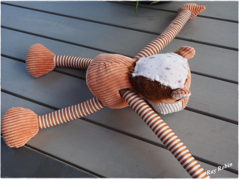 Il faut dire que Sky l'avait sacrément amoché le pauv'joujou J'ai donc cousu à la main un bout de tissu. Joujou rendu à son proprio qui était tout content, il a fait ses parties de jeu avec lui toute la journée Espérons que ma réparation tienne le coup un moment !