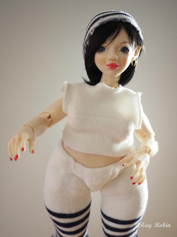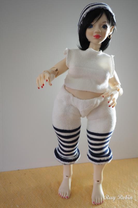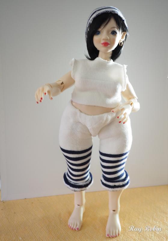 j'ai utilisé le haut du collant que j'ai coupé car c'était trop long pour le legging et je l'ai utilisé pour faire un petit haut, pas fait beaucoup de finitions mais ainsi elle est déconctracte