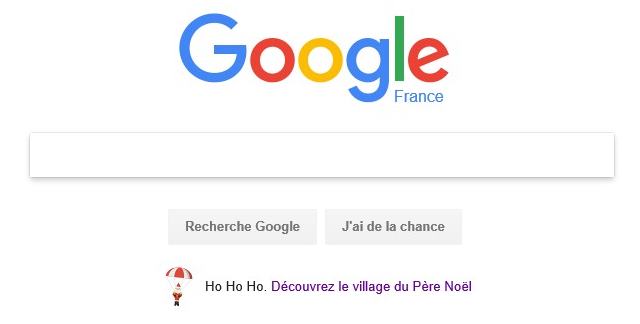 aujourd'hui pas un vrai doodle faisant la page d'ouverture de google, mais un lien qui mène à un site avec des jeux (je n'ai pas cliqué plus) Découvrez le village du père Noël
