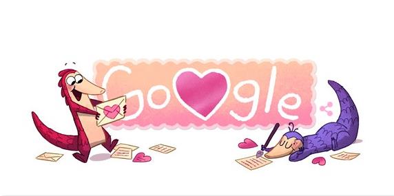 Le doodle est consacré à la préparation de la Saint Valentin encompagnie des pangolins