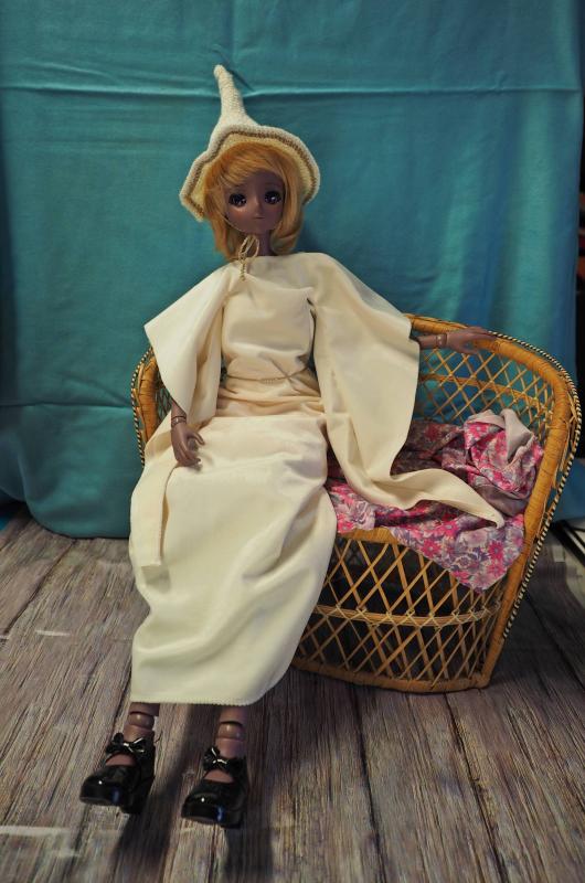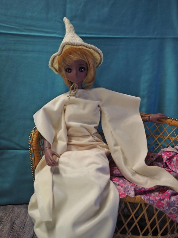 Pour la robe ... j'avais décidé de casser le code du noir, donc tout est écru mais la robe ... pas assez large pour ma Belle Erika, donc elle est n'est pas finie, j'essaierais de transformer le bas en jupe longue