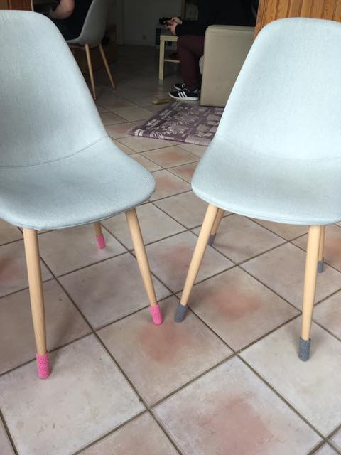 Pour changer des poupées, je vais faire des chaussettes de chaises car vraiment les notres font un bruit d'enfer (de fer hi hi) quand on les déplace
