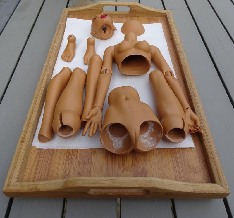 je l'ai acheté en octobre 2012, j'avais remarqué qu'elle brillait beaucoup trop lorsque nous l'avions photographiée, alors pour donner un coté mat nous avons mis du vernis spécial mat, quelle erreur, elle s'est mise à "cloquer" de partout, donc releguée dans un carton