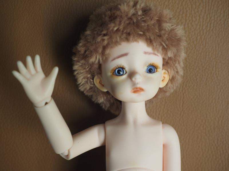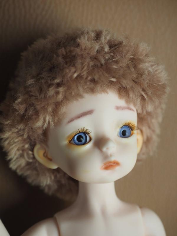 Ray a mis les sourcils et j'ai fait une perruque avec la laine pour nounours